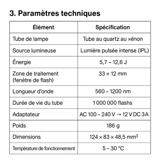 Merci d'avoir choisi l'un de nos appareils d'épilation IPL conçu pour un usage à